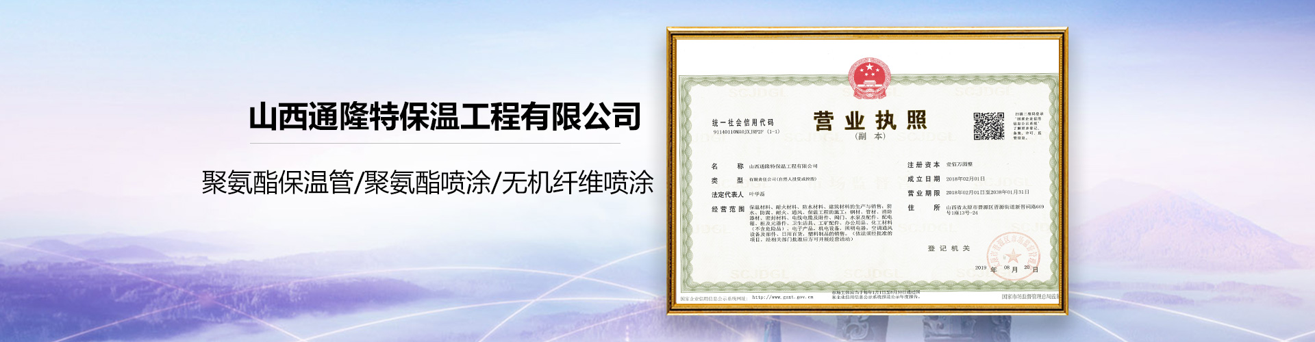 山西通隆特保溫材料有限公司是集生產(chǎn)、銷售、施工、服務(wù)于一體的現(xiàn)代化企業(yè),通隆特保溫材料廠址位于太原市清徐縣徐溝鎮(zhèn)南內(nèi)道村,辦公地址在太原市萬柏林區(qū)奇天瑞鋼材南市場B區(qū)18號,公司生產(chǎn):聚氨酯黑黃夾克保溫管(管中管)、聚氨酯預(yù)制直埋保溫管(玻璃鋼防腐)、聚氨酯瓦殼、玻璃棉制品、橡塑保溫材料;承攬管道防腐、外墻保溫、噴涂保溫、鐵皮保溫工程,公司技術(shù)力量好,擁有生產(chǎn)設(shè)備,生產(chǎn)工藝和質(zhì)量檢測手段,并且還注入了大批高技術(shù)...